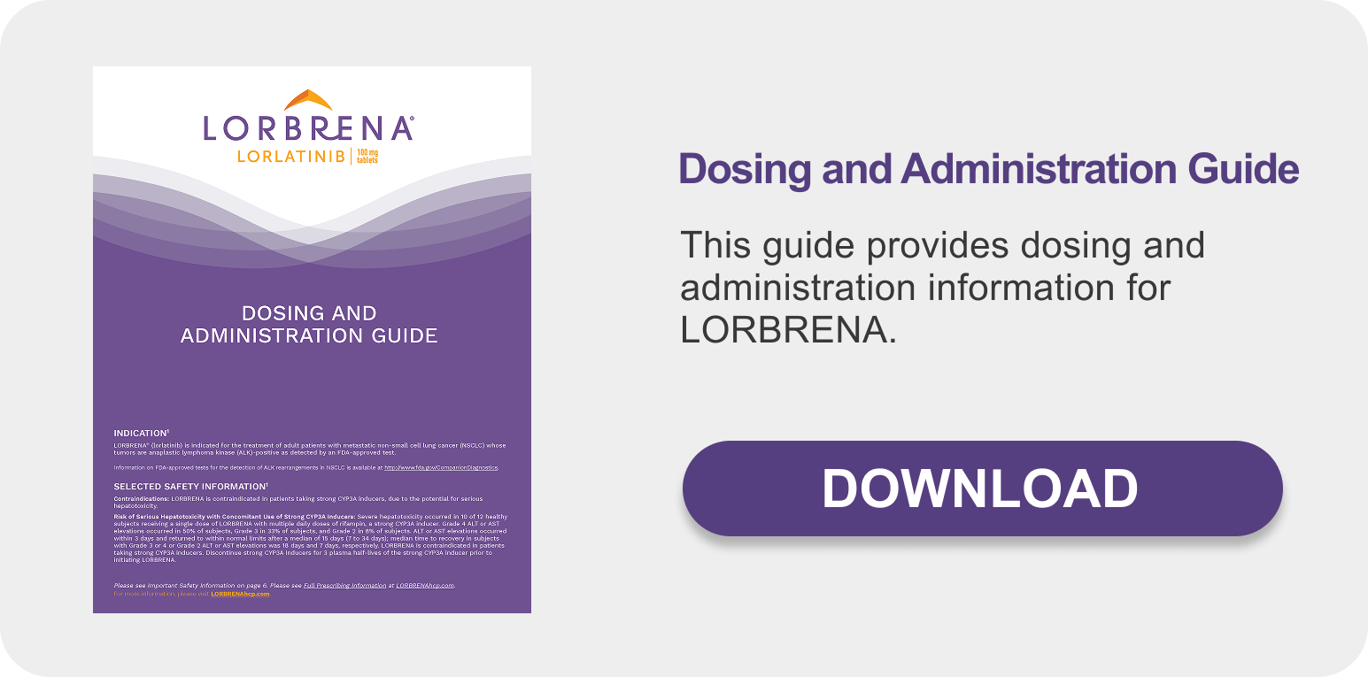 LORBRENA is contraindicated in patients taking strong CYP3A inducers. Avoid concomitant use with moderate CYP3A inducers, strong CYP3A inhibitors, and fluconazole. If concomitant use of moderate CYP3A inducers cannot be avoided, increase the LORBRENA dose as recommended. If concomitant use with a strong CYP3A inhibitor or fluconazole cannot be avoided, reduce the LORBRENA dose as recommended. Avoid concomitant use of LORBRENA with CYP3A substrates and P-gp substrates, which may reduce the efficacy of these substrates.