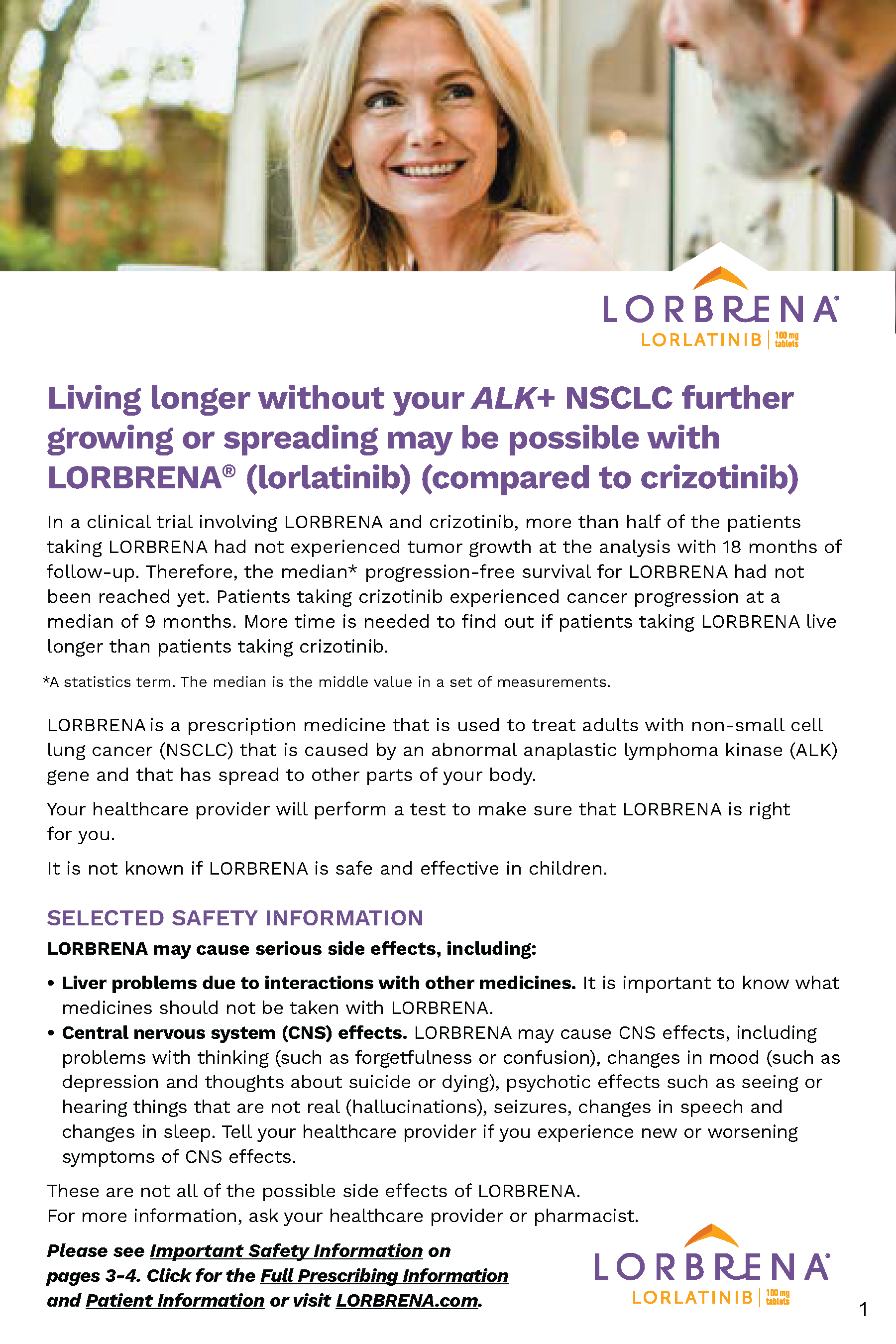 LORBRENA; the most frequently reported serious adverse reactions were pneumonia (4.7%), dyspnea